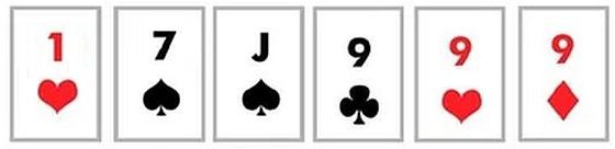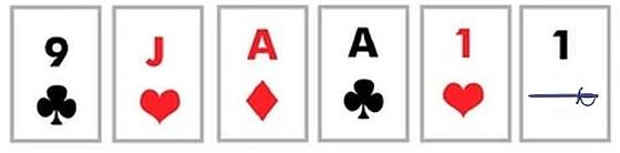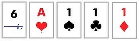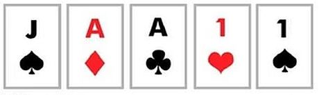 5 Aces .. 5 Kings .. 5 Queens .. 5 Jacks .. 5 Tens .. and so on. NOTE .. Up to three Aces can be used as One Cards. |