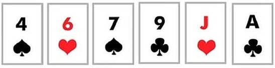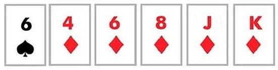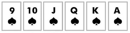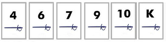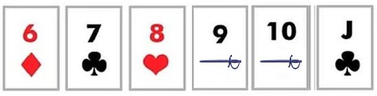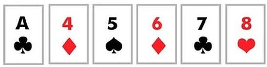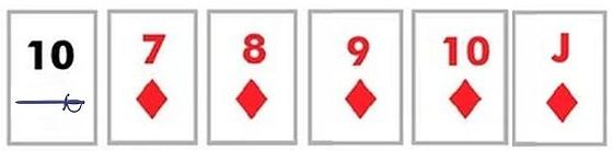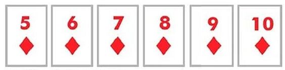 (1) .. King-Queen-Jack-Ten-Nine-Eight (2) .. Queen-Jack-Ten-Nine-Eight-Seven .. and so on. NOTE .. Ace can be One Card in a Six-Five-Four-Three-Two-One combo. |