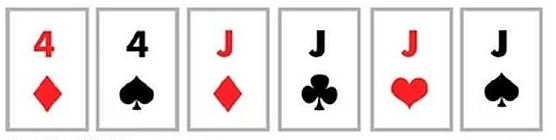 Highest -- 3 Aces and .. 3 Kings / 3 Queens / 3 Jacks / etc. Next Highest -- 3 Kings and .. 3 Queens / 3 Jacks / 3 Tens / etc. ... and so on. |