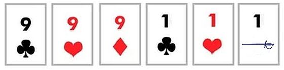 4 Aces and .... 2 Kings / 2 Queens / 2 Jacks / etc. 4 Kings and ... 2 Aces / 2 Queens / 2 Jacks / etc. 4 Queens and .. 2 Aces / 2 Kings / 2 Jacks / etc. .. and so on. See also NOTES-1 below --- |